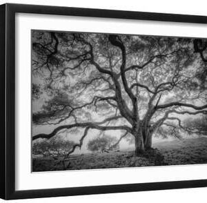 Majestic Old Oak, Black and White, Petaluma Northern California - Black Framed Art Print Wall Art, 18x12
